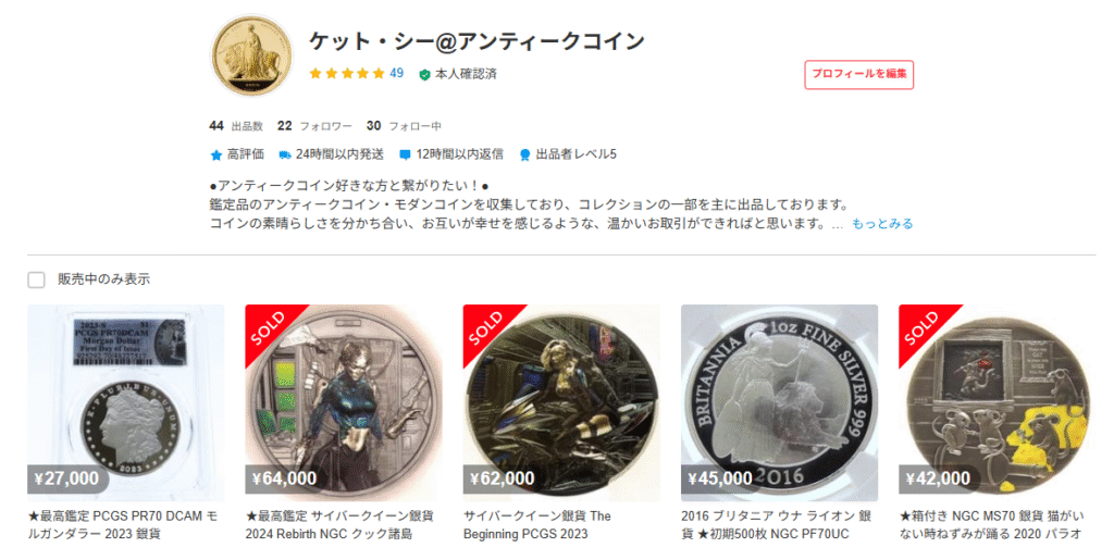 歴史の輝きを放つアンティークコインの魅力を、もっと身近に感じてほしい。そんな想いで、一枚一枚大切に選んだコインをメルカリで販売しております。